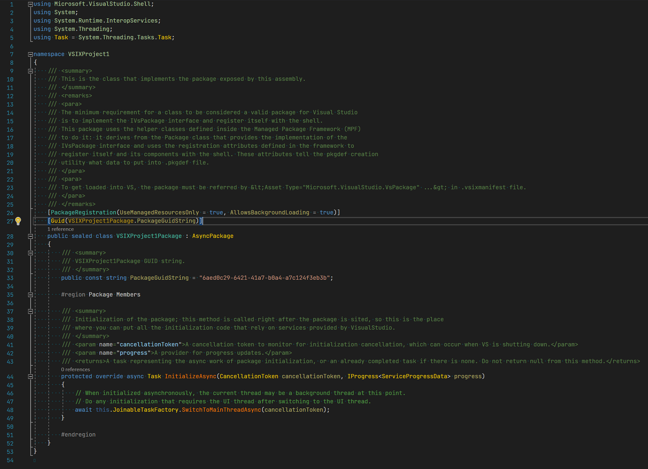 프로젝트를 생성하면 AsyncPackage 클래스가 하나 자동으로 생성됩니다.