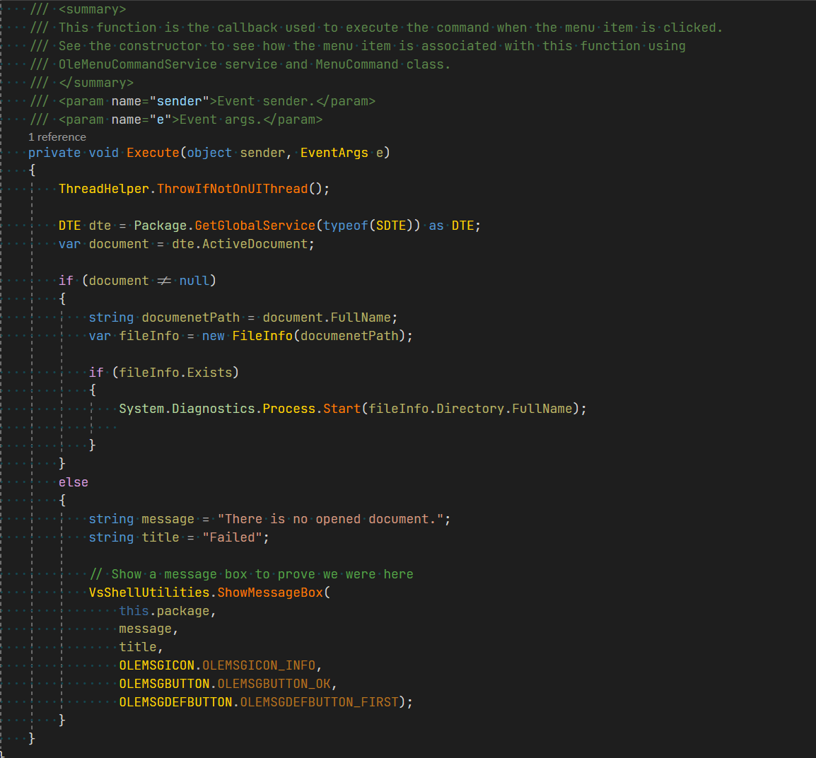 현재 활성화된 Document를 찾고, 탐색기로 여는 로직을 작성합니다.