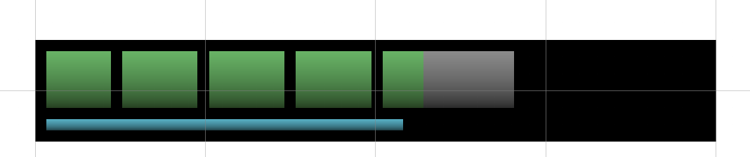 가장 아래쪽에 쉴드, 그 위에 데미지를 받아 변경된 수치를 업데이트 해 줄 이펙트용 이미지, 실제 체력, 그리고 가장 위에서 몇 칸인지 나누어질 Separator입니다.