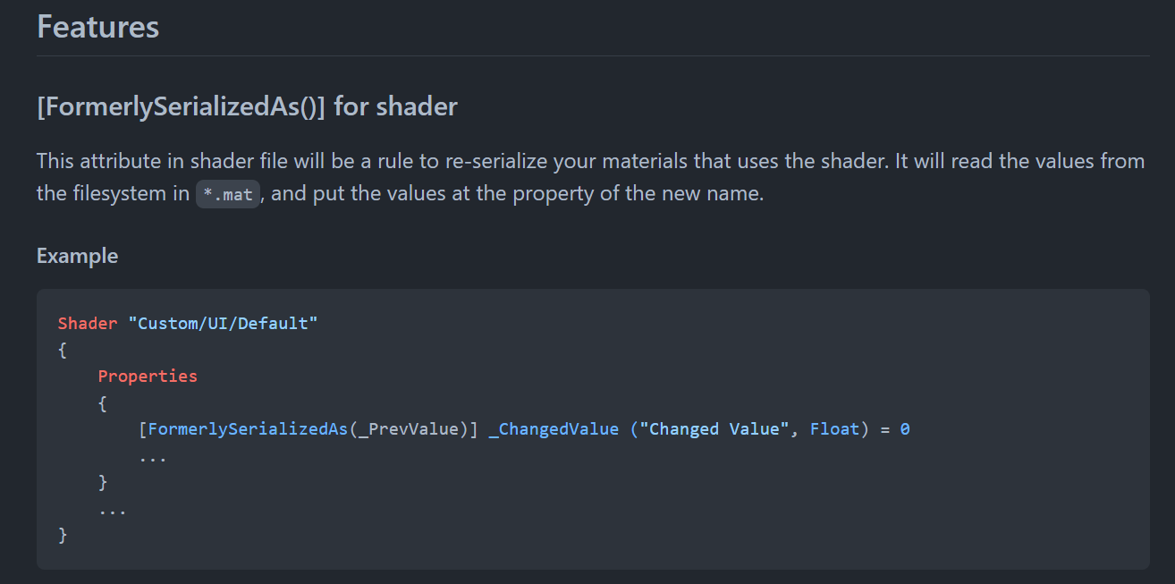 [FormerlySerializedAs] attribute for ShaderLab in Unity. - GitHub - seonghwan-dev/FormerlySerializedAsForShaderLab: [FormerlySerializedAs] attribute for ShaderLab in Unity.