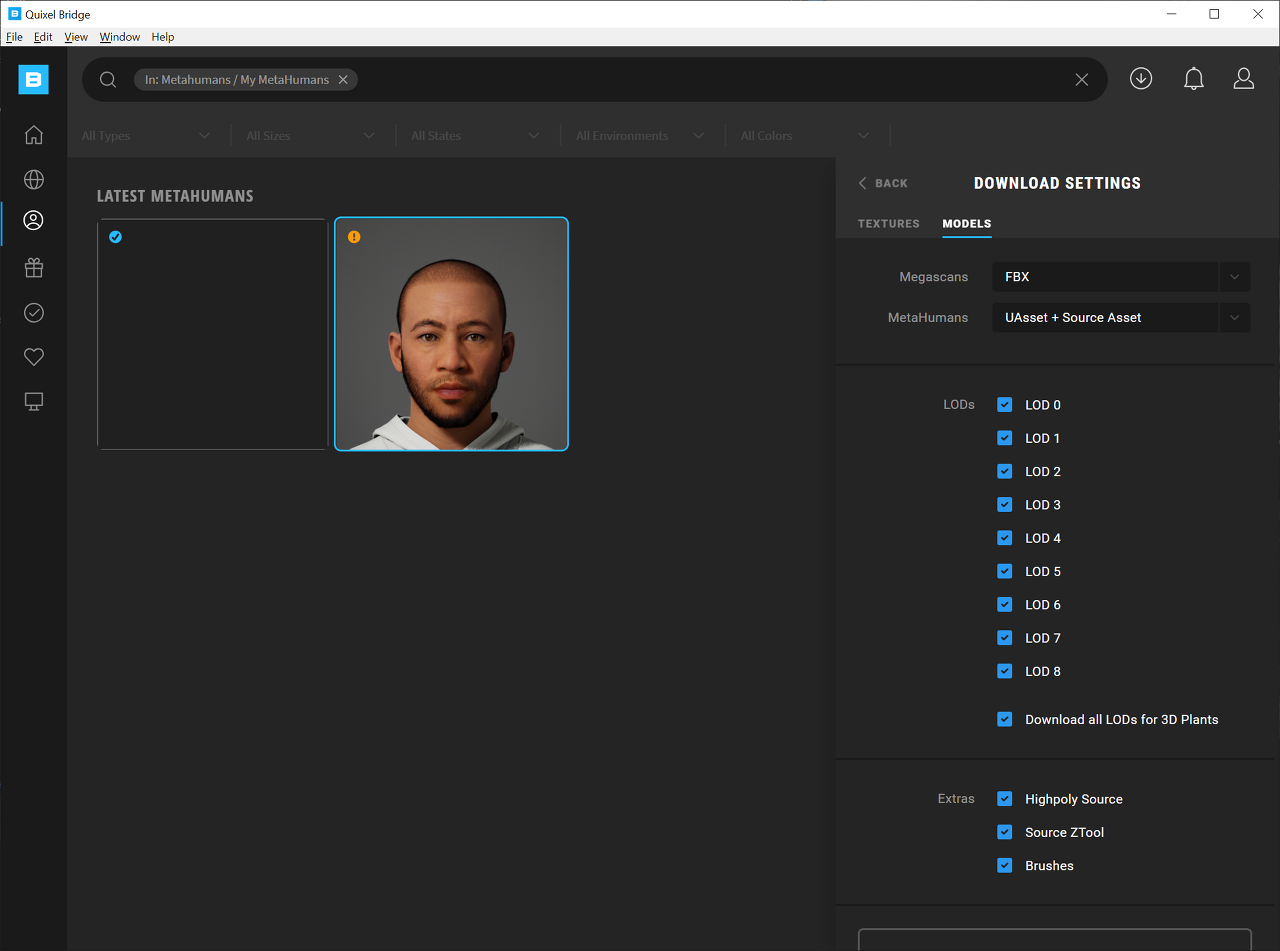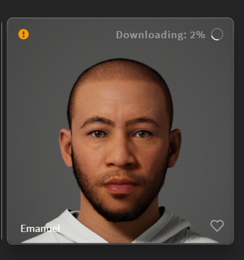 다운로드를 시작하면 진행도가 메타휴먼 아이콘 위에 나타납니다.