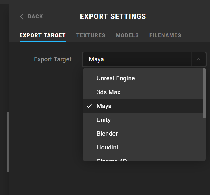 Maya로 자동으로 추출하기 위해서는 추출 설정을 Maya로 선택합니다.
