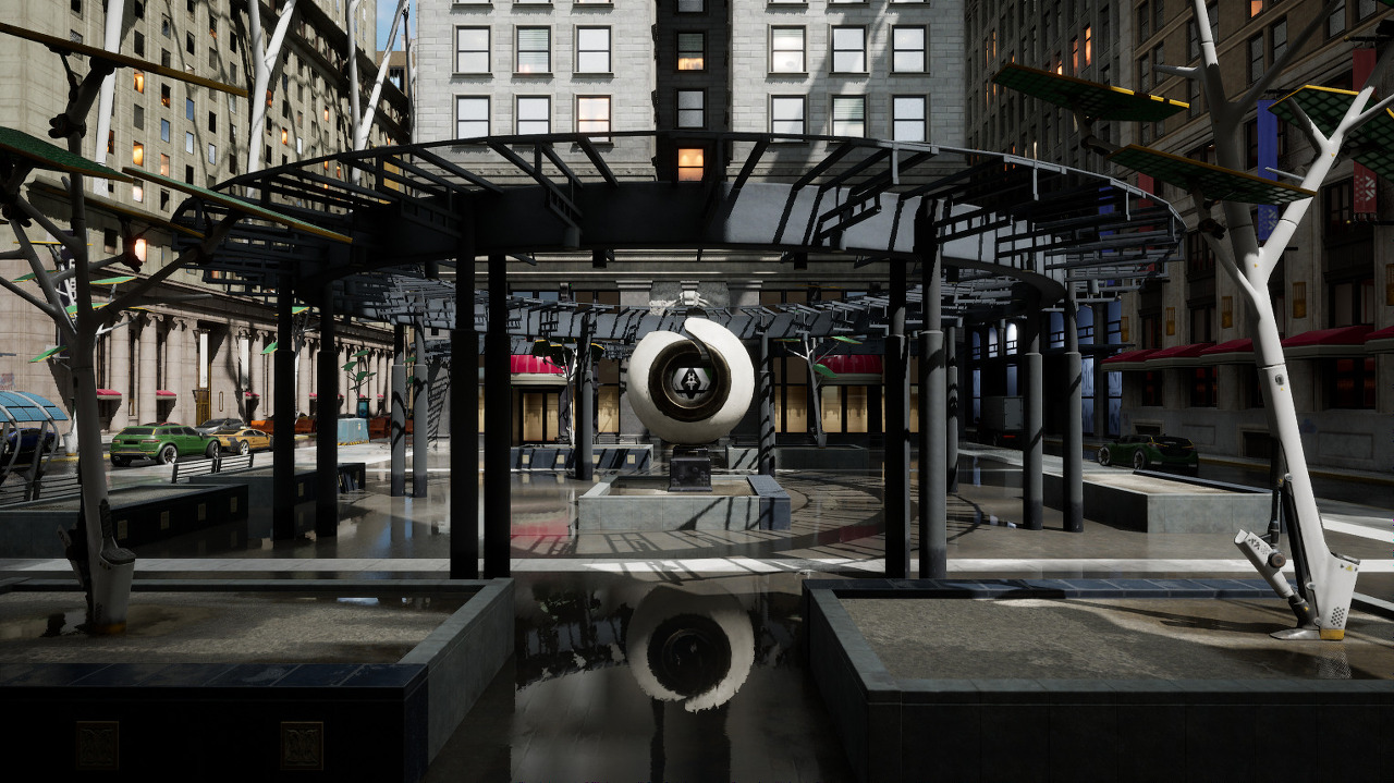 아래 장면에서 소프트웨어 레이트레이싱은 스크린 트레이싱을 먼저 사용한 후, 믿을만한 높은 비용의 트레이싱 옵션을 사용하게 됩니다. 만약 글로벌 일루미네이션과 리플렉션을 위한 스크린 트레이싱이 꺼져있다면, 루멘 씬만을 볼 수 있습니다. 스크린 트레이싱은 루멘씬과 트라이앵글 씬의 싱크 깨짐을 해결하는데 도움을 줍니다.