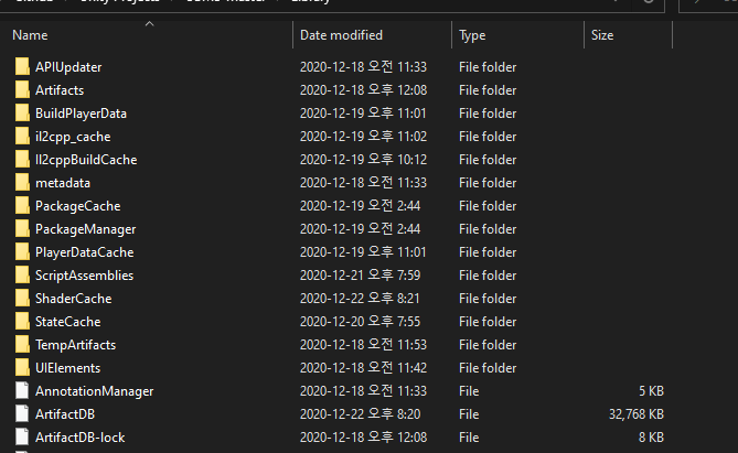 이 파일을 토대로 Library 폴더에 데이터캐쉬(Cache)를 생성합니다. 프로젝트를 유니티 엔진으로 열고, 프로젝트의 루트 디렉터리를 보면 Library 폴더가 생깁니다. 이 폴더에 미리 게임 엔진에서 바로 사용할 수 있도록 데이터를 만들어 저장해두는 것입니다.