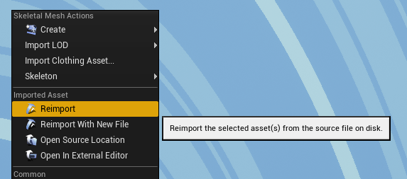 외부 툴에서 프로젝트 내의 에셋에 바로 접근할 수 없습니다. 그래서 작업하는 폴더와 작업물이 저장될 위치를 따로 마련해야합니다. 이미 임포트 된 리소스를 수정할 수는 없고, 이전에 임포트했던 source file의 경로의 리소스를 덮어쓰기 한 뒤, 엔진에서 리임포트를 시켜주는 방식을 사용하여야 합니다. 엔진에서 꼭 리임포트를 해주어야한다는 것이 유니티에 비해 단점으로 작용할 수도 있지만, 큰 프로젝트에서 리소스 관리를 해주는 경우 오히려 괜찮은 기능으로 활용될 수도 있습니다.