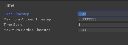 다음 스텝에 호출될 함수와 문제를 일으킬 것은 자명합니다. 프로젝트 설정에는 Maximum Allowed Timestep이라는 fixed time 관련 옵션이 있습니다. 이 수치는 fixedUpdate가 사용할 수 있는 최대 시간을 의미합니다. 이 수치를 기준으로 다음 FixedUpdate 호출이 수행되지 않을 수 있습니다. 게임의 설계에 따라, fixedUpdate가 생략되는 경우가 치명적이라 판단하여 생략되지 않도록 처리하고 싶을 수도 있습니다. 그런 이유로 fixed Step 시간과 maximum allowed 시간을 동일 하게 맞추면 될까요? 실제로 테스트 해 본다면, 최대 수치를 능가하는 부하가 걸리는 경우 유니티의 게임 타임이 느려집니다.