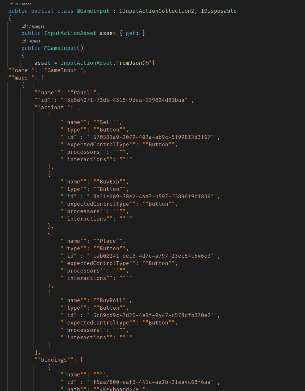 자동생성된 클래스인 GameInput을 살펴보면 하드코딩된 Json으로 부터 설정을 불러온다.