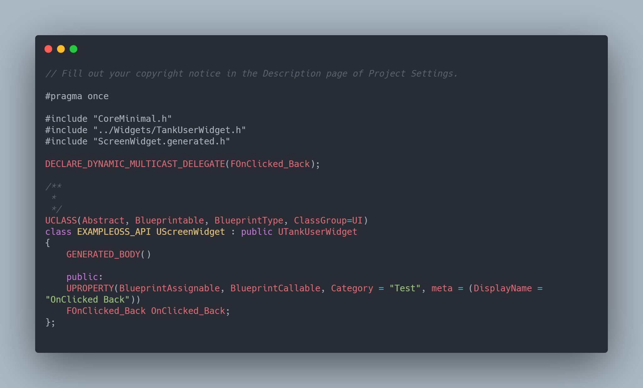 DECLARE_DYNAMIC_MULTICAST_DELEGATE(F...); 매크로로 델리게이트를 정의하고, 클래스 내에서 UPROPERTY를 붙여 델리게이트를 선언해줍니다.