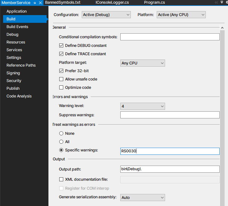 개발환경에서만 필요하므로, Debug Configuration인 경우에 대해서만 BannedApiAnalyzer를 참조하도록 조치하는 형태로 구성해도 된다.