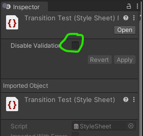 어느 정도의 컴파일 에러와 버전대응은 이것으로 마무리되는가 싶었지만, 의외로 꽤 성가신 타입의 문제도 존재했습니다. UI Toolkit은 기본적으로 uxml + uss 조합으로 이루어지는데, 웹 개발에서의 html + css 정도 역할로 간편하게 생각할 수 있습니다. html 만큼의 자유도를 가지지는 못하지만, uxml은 레이아웃과 초기값을 담당하며 uss는 스타일시트입니다. 그런데, 상위 버전의 uss 선택자를 사용하면 하위 버전의 에디터에서는 그 검증단계에서 에셋 데이터베이스가 새로고침되어 에셋이 임포트 될 때 마다 에러를 뱉습니다.