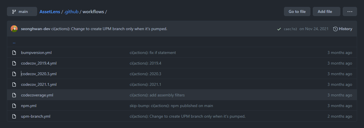 작년 3,4분기에 열심히 개발하던 AssetLens라는 이름의 종속성 탐지 기능이 중점인 플러그인이 있습니다. 지금도 작게나마 관리중이지만, 플러그인의 특성상 다양한 버전의 유니티 에디터를 지원해야하는 어려움에 부딪혀 점차 개발속도가 느려지다 끝내 소소한 버그픽스만 진행하고 있습니다. 가장 큰 문제는 한 번만 작업하고도 여러 버전의 에디터를 동시에 지원하고 싶은 욕심이 불러온 복잡한 개발 파이프라인입니다.