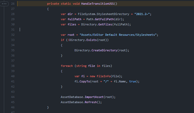 어쩔 수 없이 마지막으로 선택한 방법은 유니티 에디터가 인식하지 못하는 폴더에 리소스를 담아둔 뒤, 에디터 콜백에서 직접 파일을 복사해주어 사용하는 것입니다. 이 방식은 아래 코드에서 확인할 수 있습니다.