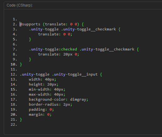 css에서는 해당 뷰를 렌더링하는 브라우저에서 선택자가 구현되어있는지 여부에 따라 선택자가 실행되도록 하는 @supports 같은 키워드가 존재합니다. 혹시나 uss에서도 그와 유사한 기능이 있을까 하여 기대했지만, 그런 일은 일어나지 않았습니다. 포럼에 묻고 건의했으나, 언제나 그랬듯 릴리즈 매니저의 시큰둥한 반응을 들어줘야 했습니다.
