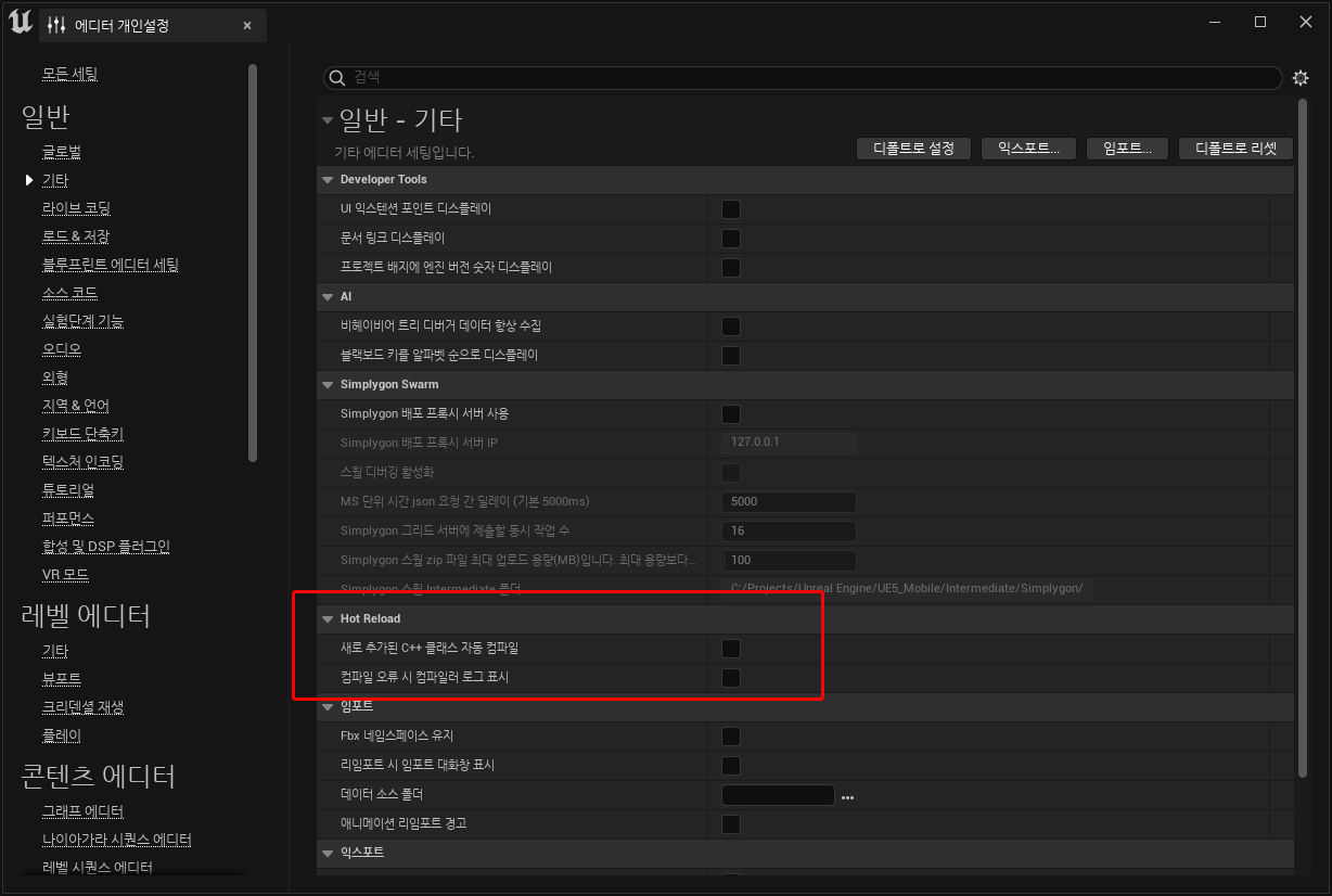 언리얼: C++ 클래스 추가시 자동 컴파일 해제