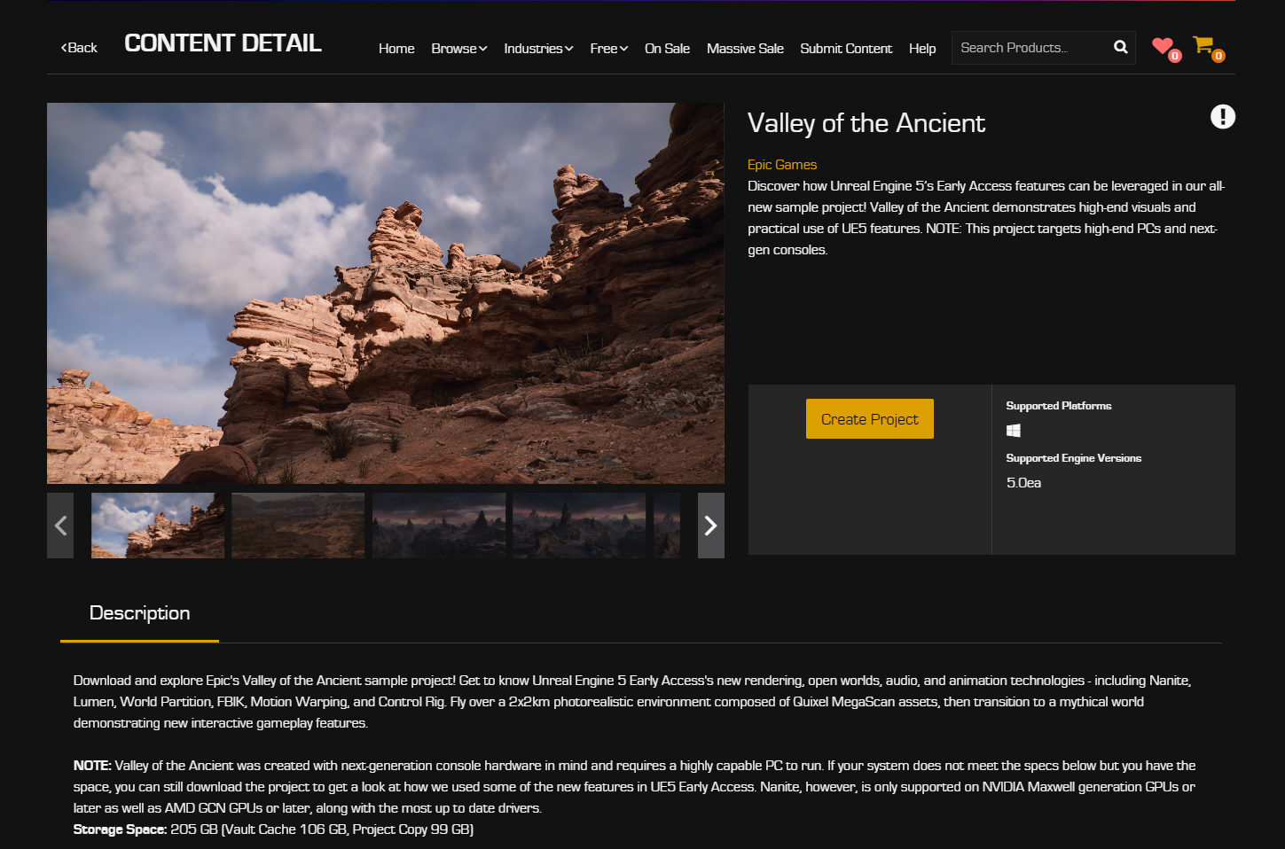 언리얼엔진5 얼리엑세스가 출시되면서 제공 샘플인 에인션트의 협곡을 다운로드 받으려고 했으나...