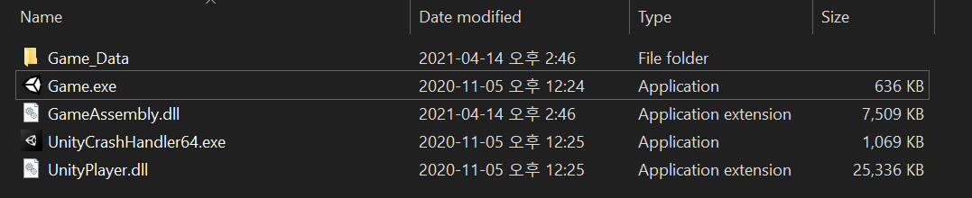빌드된 유니티 프로그램의 디렉터리를 확인하면 크게 3가지로 구분할 수 있습니다.