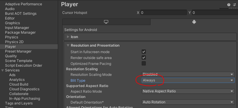 Unity: 안드로이드 빌드 Splash 후 검은 화면 해결 방법