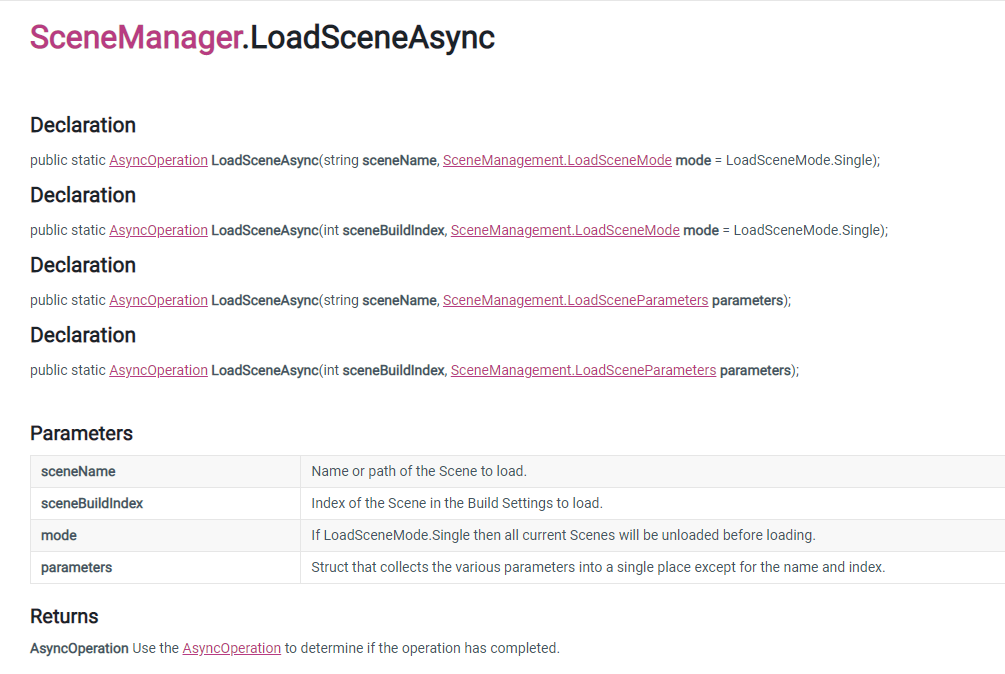Unity - Scripting API: SceneManagement.SceneManager.LoadSceneAsync