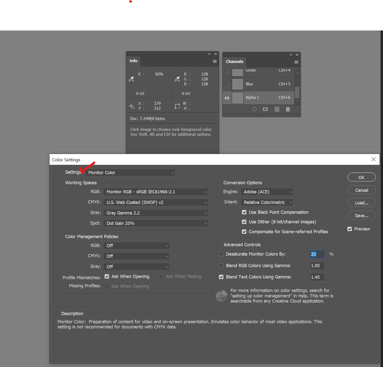 포토샵의 문제 -> 컬러 스페이스 세팅으로 해결