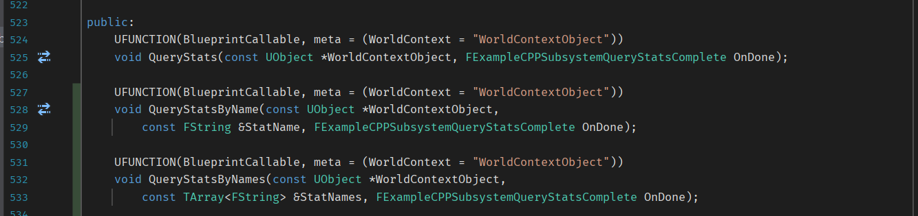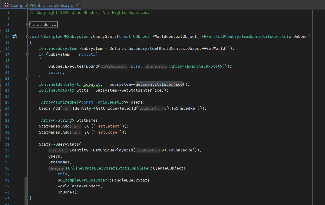 const FString &StatName, FExampleCPPSubsystemQueryStatsComplete OnDone)