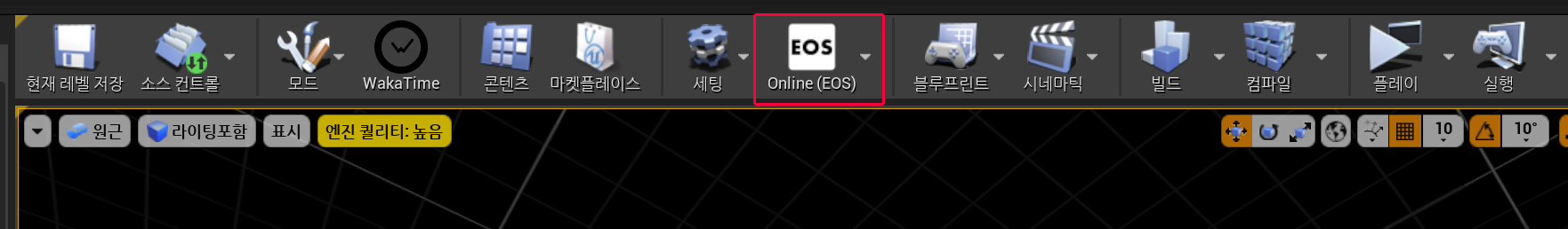에디터가 재실행되면 상단 리본 아이콘에서 Online (EOS)를 눌러 세팅을 엽니다.